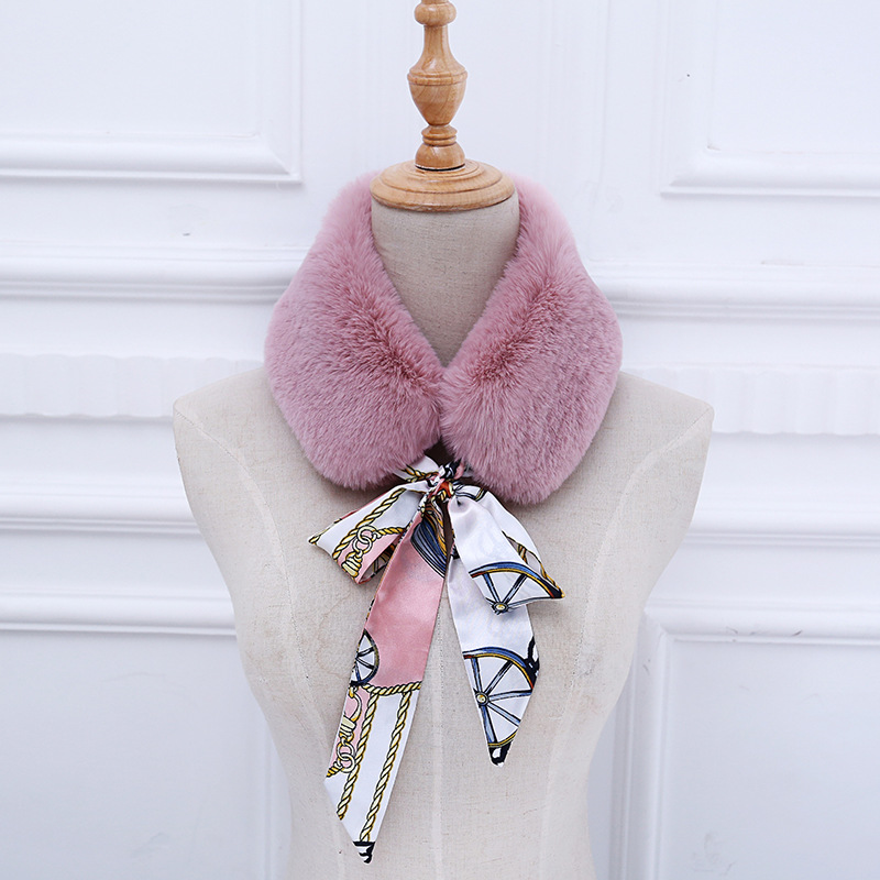 冬の韓国版の新型の怠け者のウサギの毛のぬいぐるみは毛皮のマフラーのリボンをまねて首の毛の襟の純色を囲みます。