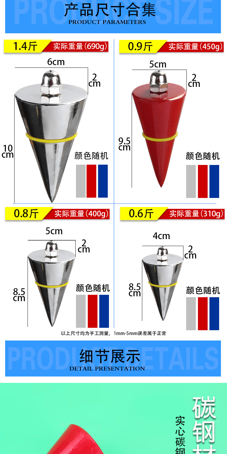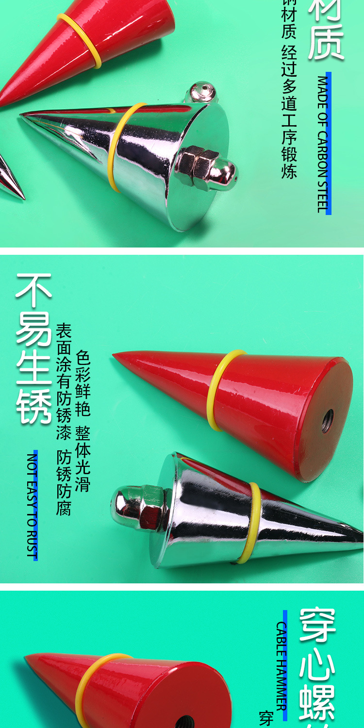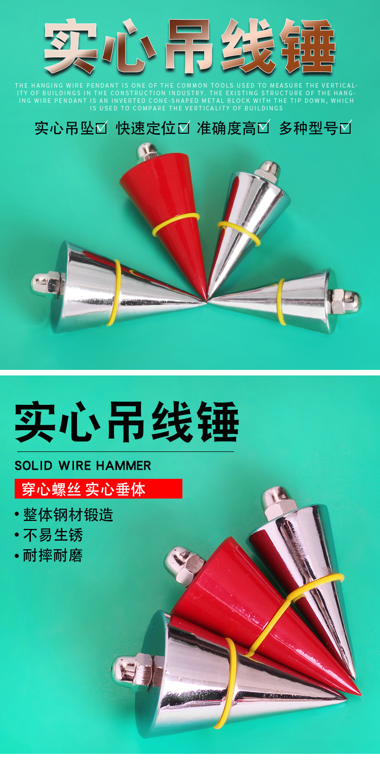 木工吊り上げハンマー中実心磁力吊り上げ工事現場カード中断色垂直鉛ハンマー線陀線錐