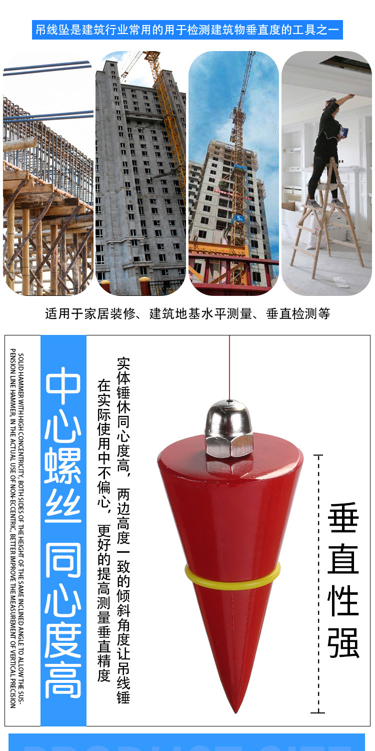 吊り線垂大工吊ハンマー建設現場吊線落線陀線垂精度中実垂直鉛ハンマー線坤