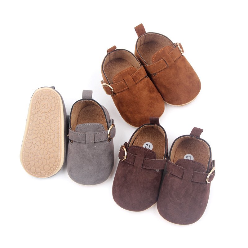 秋冬用幼児用ソフトソール滑り止め耐摩耗性おしゃれで万能な室内外兼用豆豆シューズPU素材鉄製バックル装飾トレンド