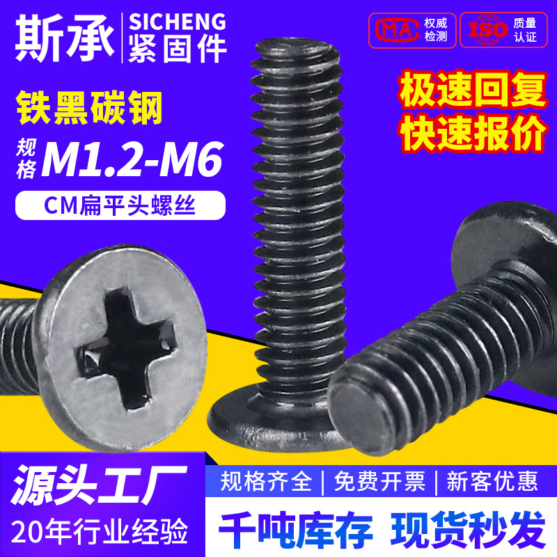 炭素鋼黒色CM薄頭ボルトネジ平頭ネジ機械ネジm1.2M2M3M4m5m6
