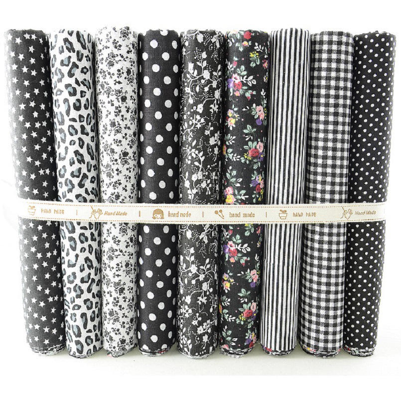 | 黑色系9片拼布布组 平纹花布 纯棉小碎花手工diy棉布 厂家批发 |
