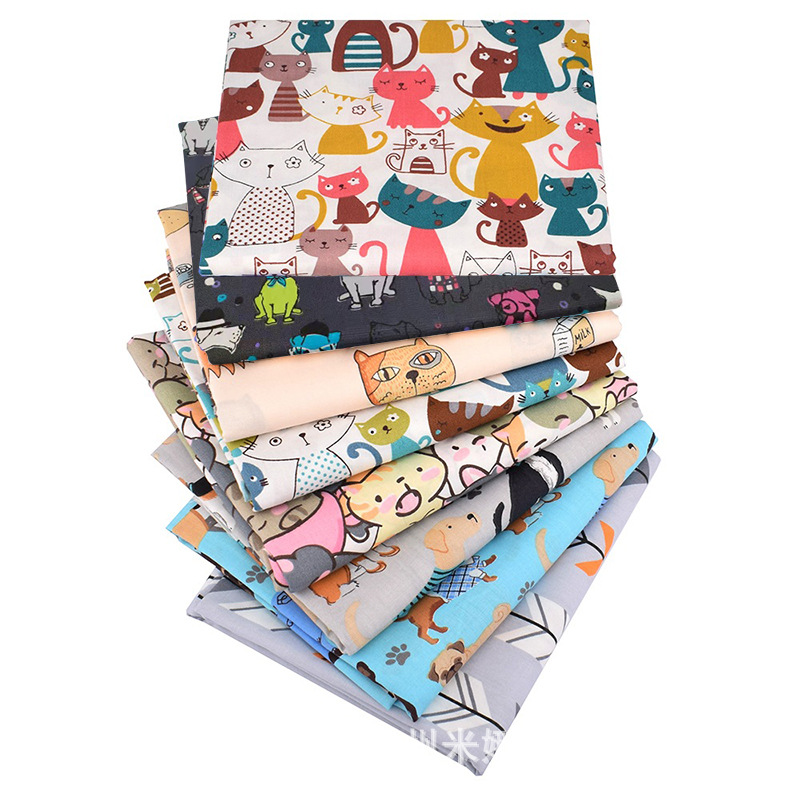 特价促销 纯棉卡通印花布料 全棉手工拼布 6片布组斜纹面料 |