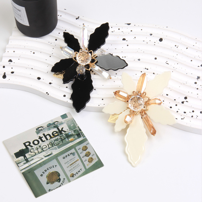 新作アクリル製精巧な手作りフラワーブローチ、ファッショナブルで高級感のあるクリスタルブローチ、パールジュエリー