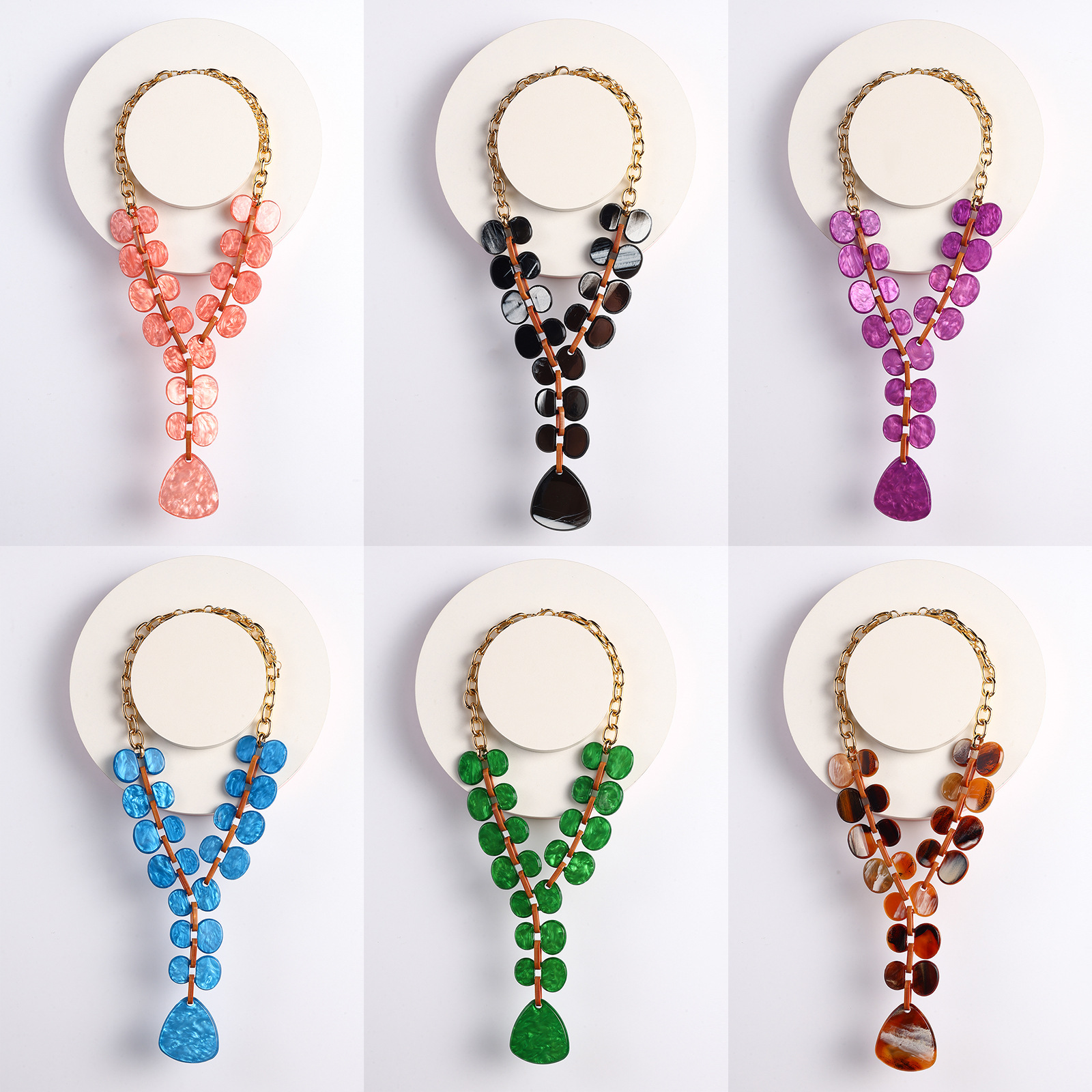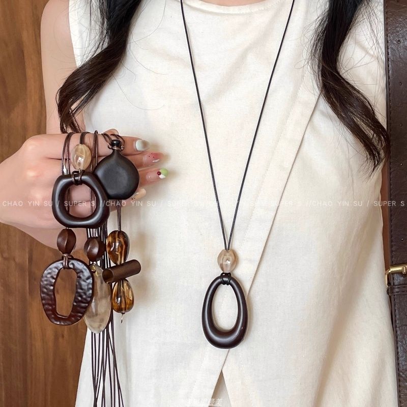 芯藍の人気商品、幾何学模様のアクリルロングセーターチェーン。夏に重ね着するのに最適なワックスコードチェーンアクセサリー、シンプルなネックレス。