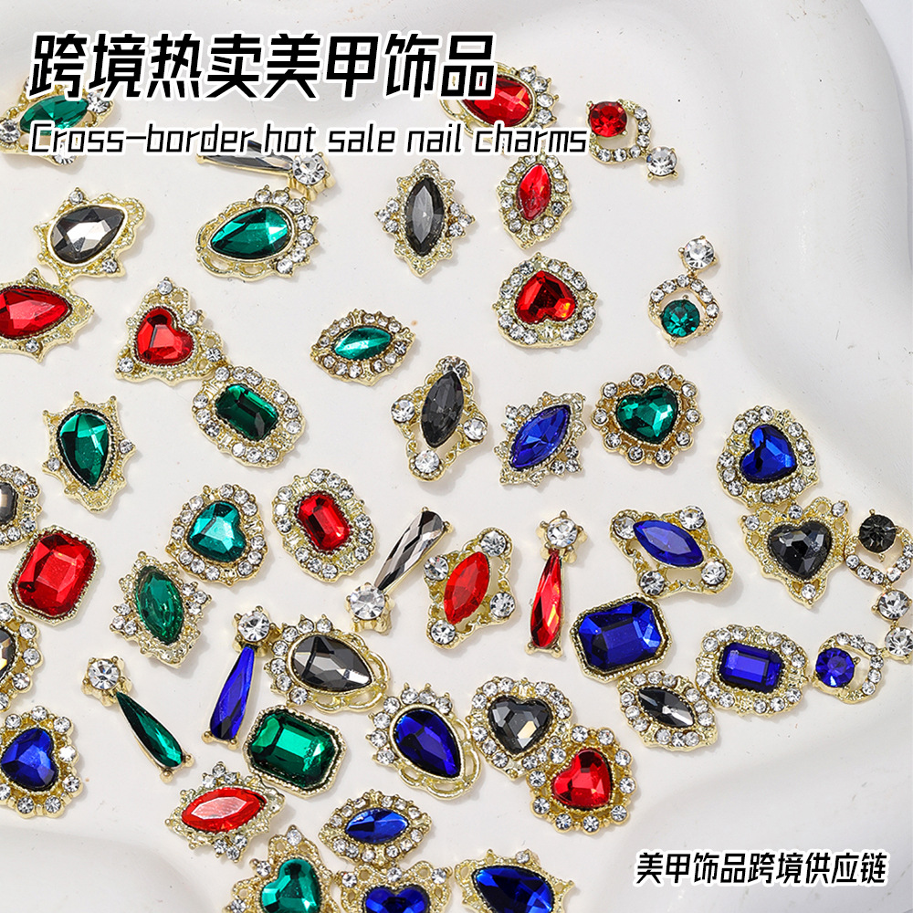 2025国境を越えた新型合金水ドリルネイルアクセサリーセット愛八角形馬眼水滴DIY爪装飾