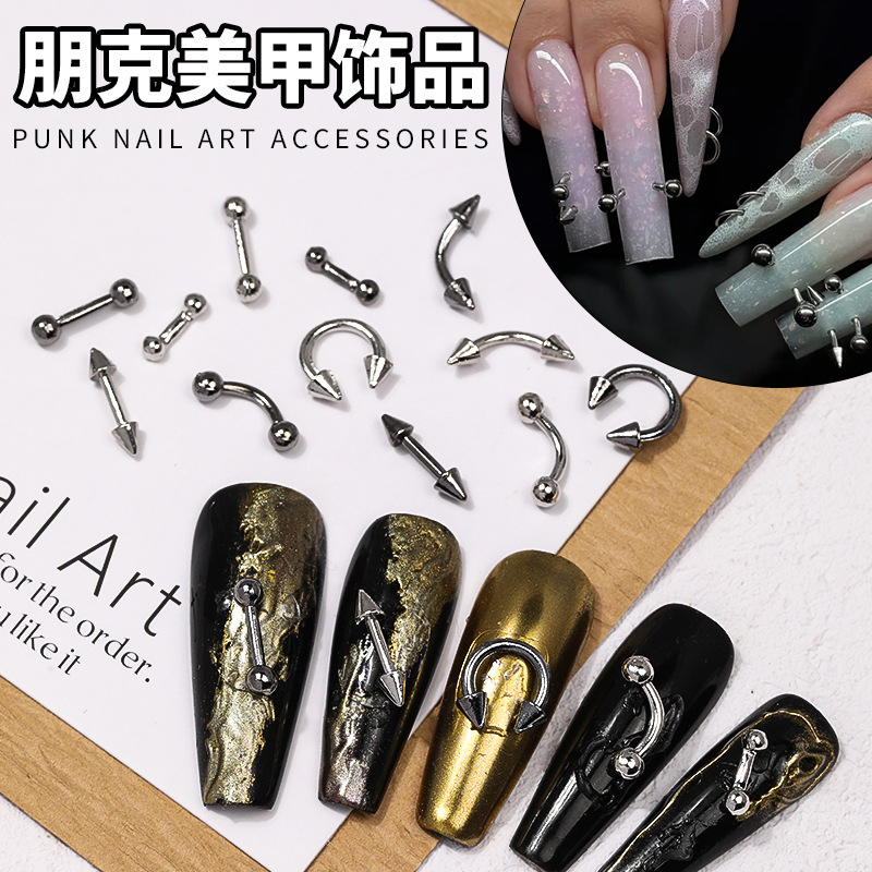 国境を越えた人気のパンクスタイルミニネイルアートアクセサリーY2KヘビーメタルロックDIY立体ネイルデコレーションアクセサリー