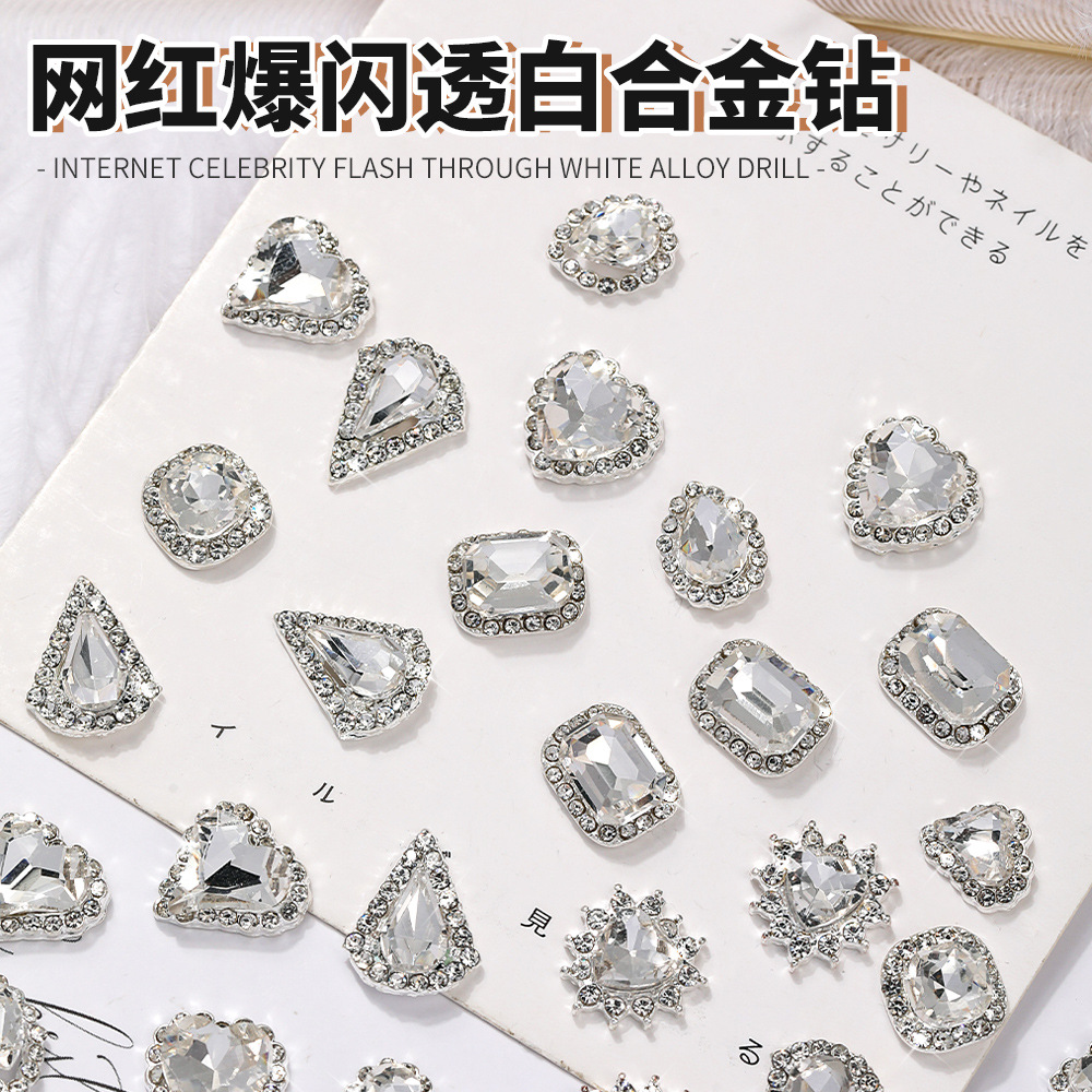 国境を越えた人気ネイルアート合金ドリル卸売りネットレッドネイルアクセサリー愛長水滴ガラスドリルab異形ドリル