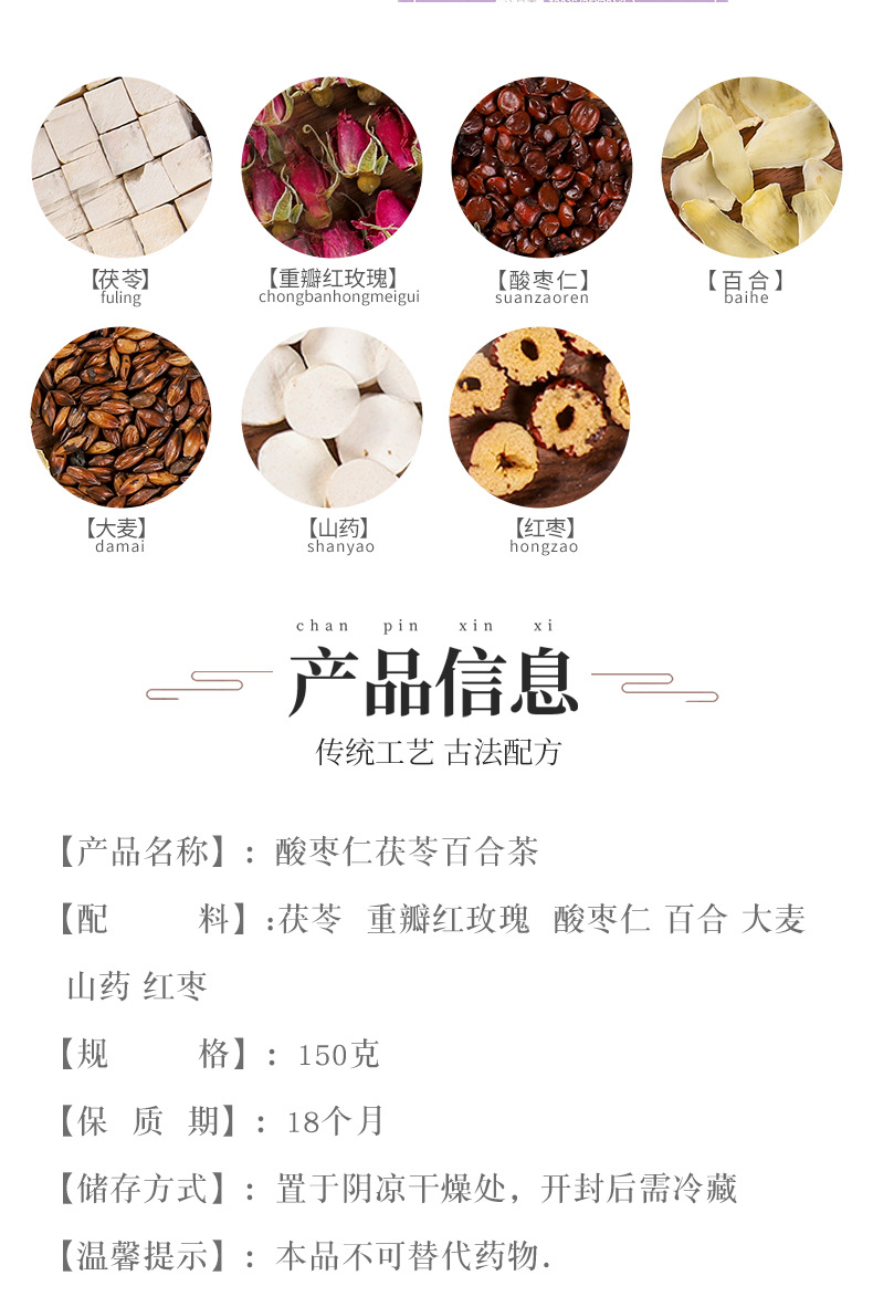 原料と原料 百合茯苓重弁紅薔薇酸棗仁山薬紅棗