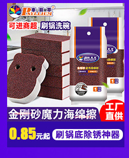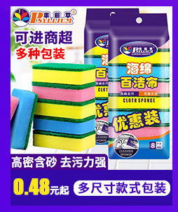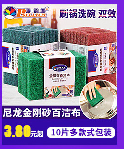 是用百洁布(涤纶纤维)粘合海绵而成的产品,百洁布一面粗糙,适合清洁难于清洁的污垢,海绵的一面,柔软不伤害磨损厨具表面,相互结合轻松把碗筷洗干净。海绵百洁布也分很多的质量,高密度的海绵,拉力好,弹性好,耐用,再粘合好的百洁布(含砂的百洁布)组合出来就是高档的实用的产品,一般的海绵超过22密度就是算好的了。差的海绵,每用两次就变形,脱胶了。所以产品有分好的差的。
