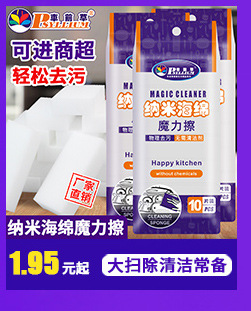 与传统清洁海绵的区别,该产品采用物理去污的机理,依靠海绵内的毛细管开孔结构,在抹拭过程自动吸附物体表面的污渍,且不需要依赖化学洗涤剂去帮助降解。纳米清洁海绵并不溶于水中,因此把海绵放在水中挤压时,吸附在海面上的污渍会自然的脱落在水中,海绵又可以重新使用。就由于该海绵的 特殊去污机理,使它对许多传统海绵没法抹掉的污垢,尤其对在凹凸不平面上的污渍,有特殊的功效。其神奇的去污力,给我们的日常生活带来了许多便利。