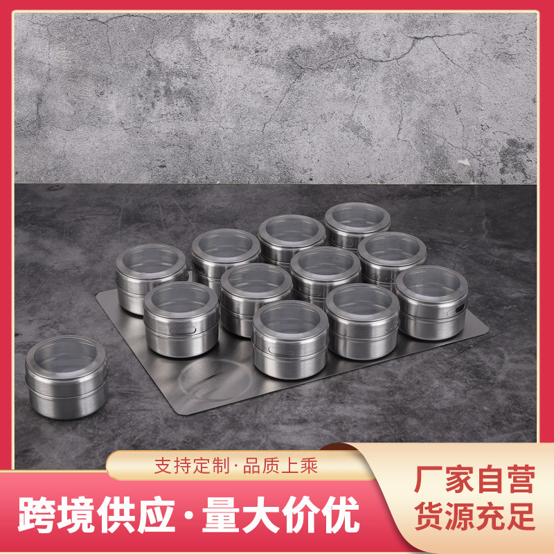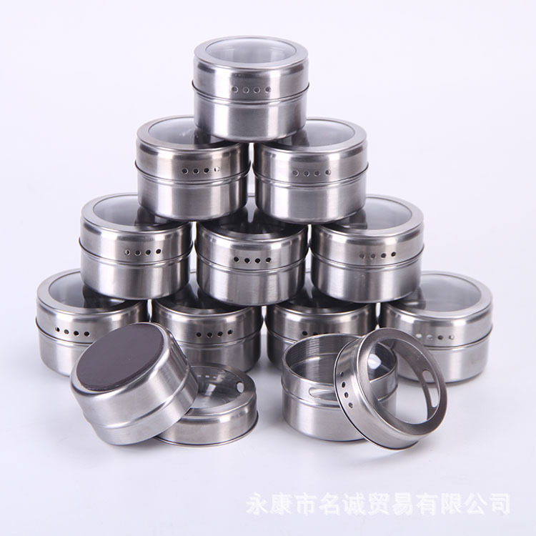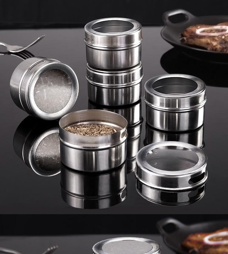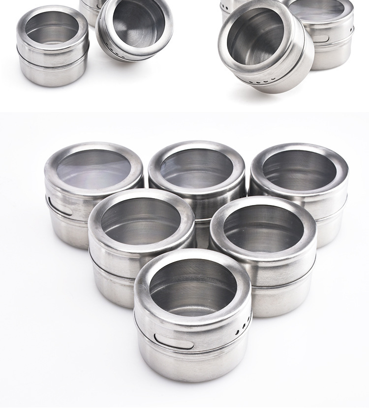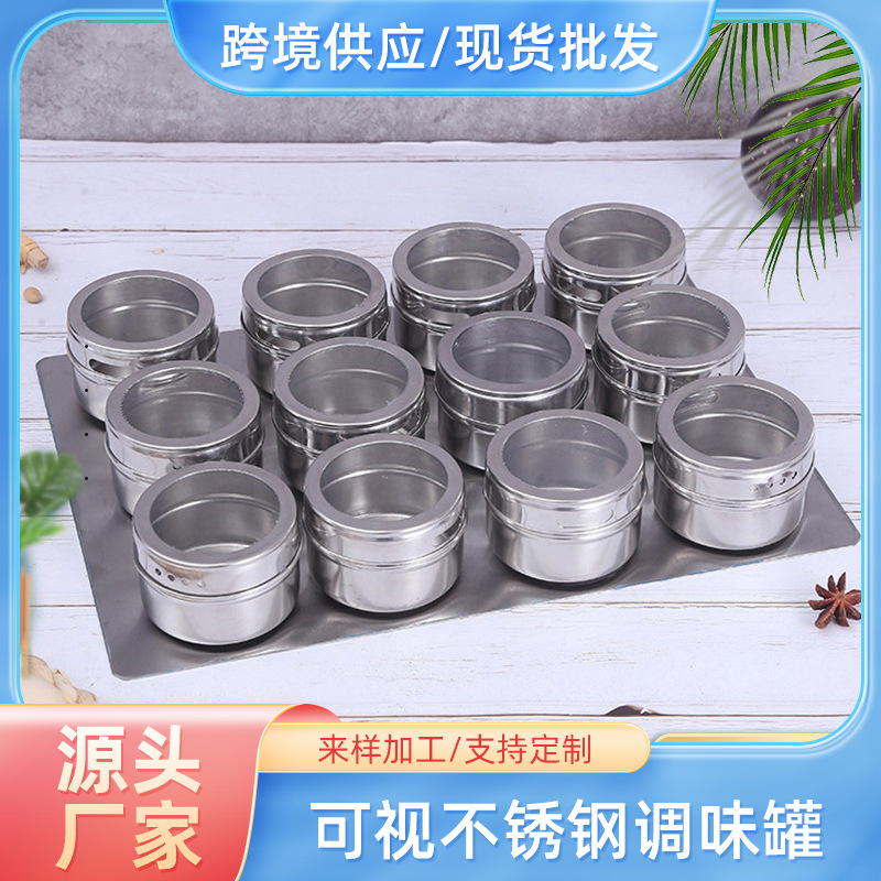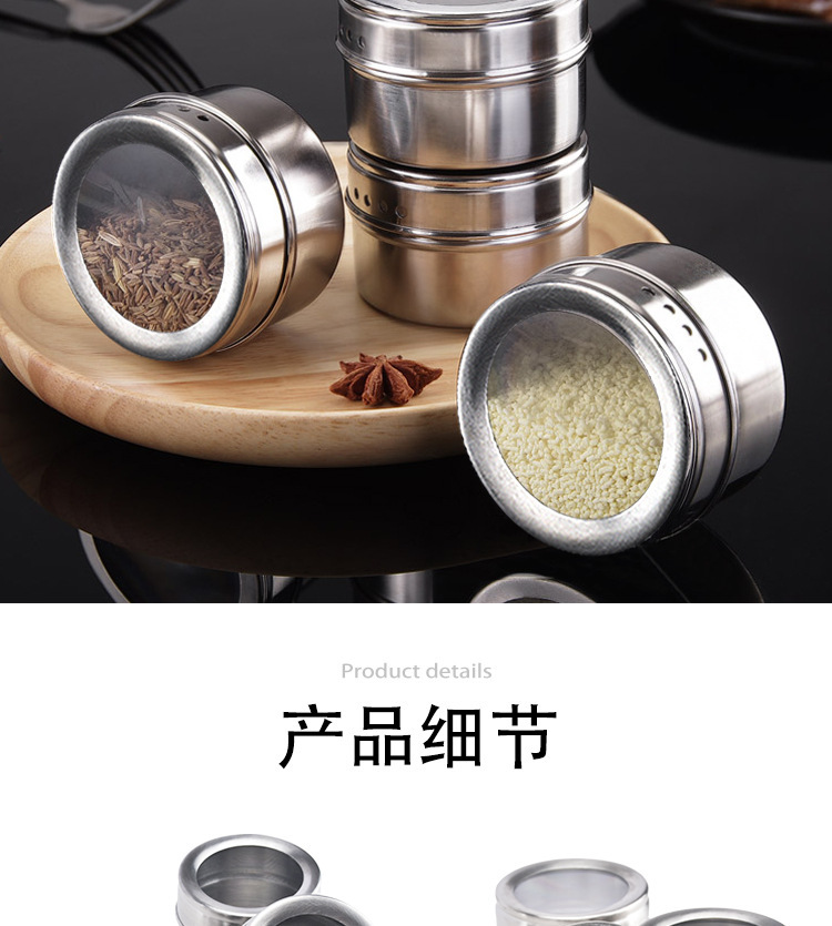 不锈钢磁吸调味罐调味瓶组合装家用带孔可视调料盒烧烤撒料瓶