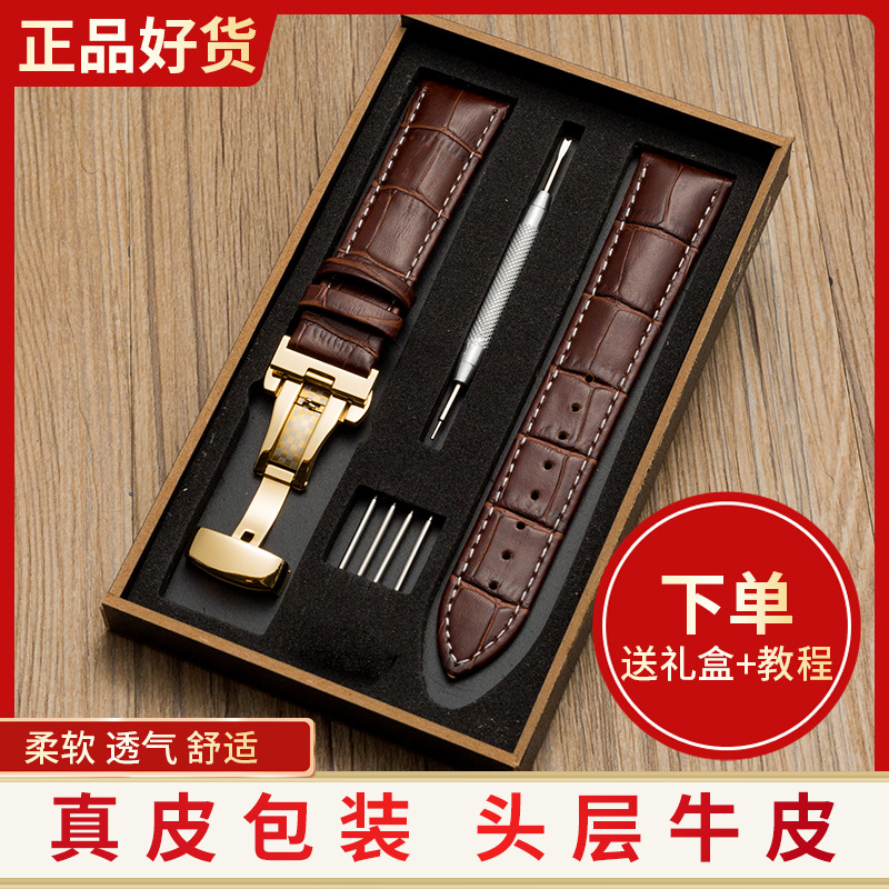 現物高級両面トップ牛革腕時計バンド真皮バンド蝶ボタン腕時計部品時計チェーンギフトボックス