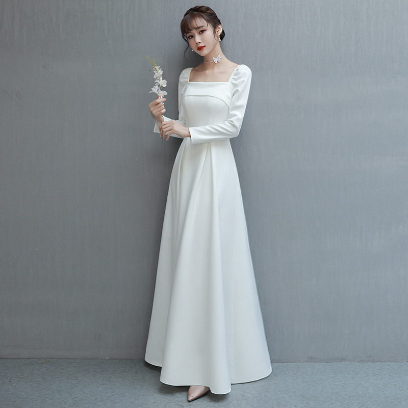 ウェディングドレス、イブニングドレス、女性用、2025年冬新作、上品な白、シンプルなフレンチサテン、軽やかなドレス、大きいサイズ、エレガント