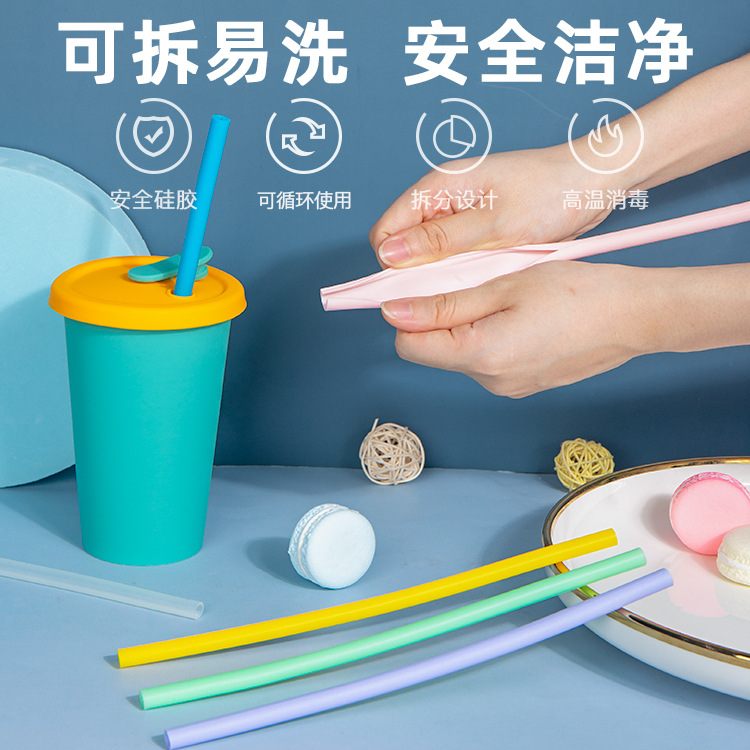 シリコン製ストロー、ミルクティー用クリップ付きストロー、直飲み、日常使い、子供用、折りたたみ式、洗える、繰り返し使えるドリンクストロー