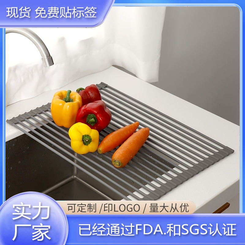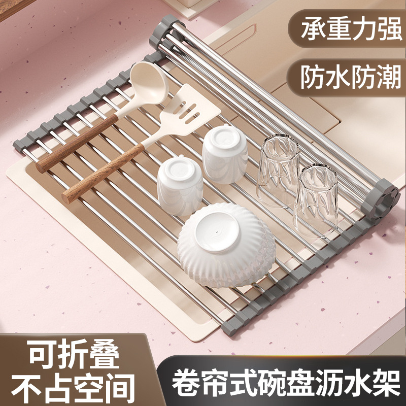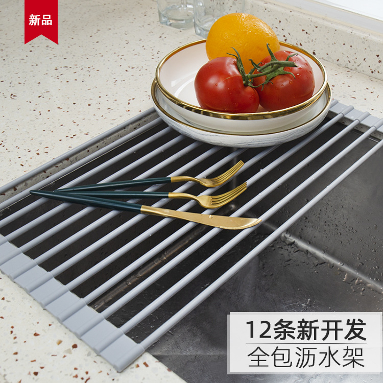 クロスボーダー多機能シリカゲル水切りロールカーテン家庭用食器や野菜の棚ステンレス折りたたみ水槽水切り棚