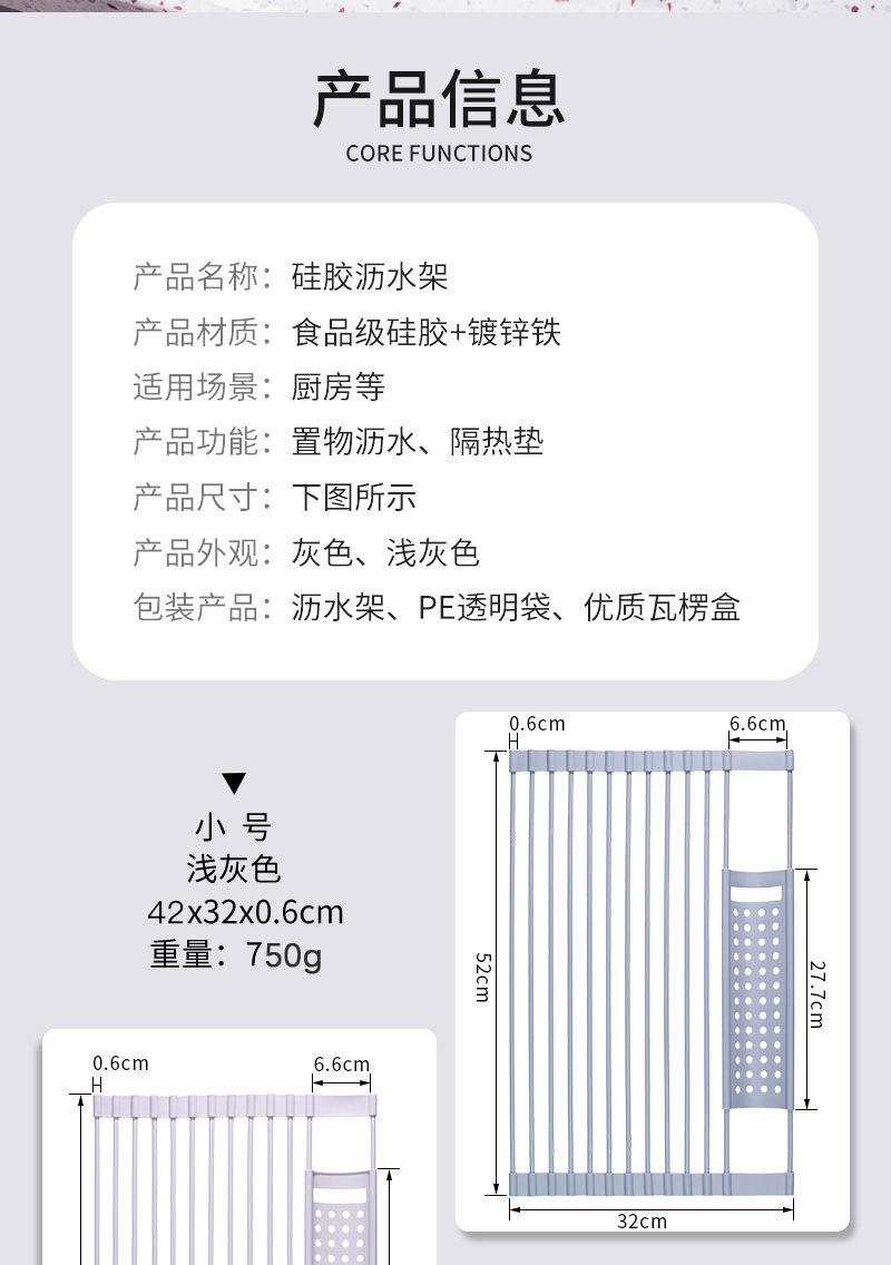 硅胶沥水卷帘可折叠碗盘置物架洗碗池水折叠厨房收纳