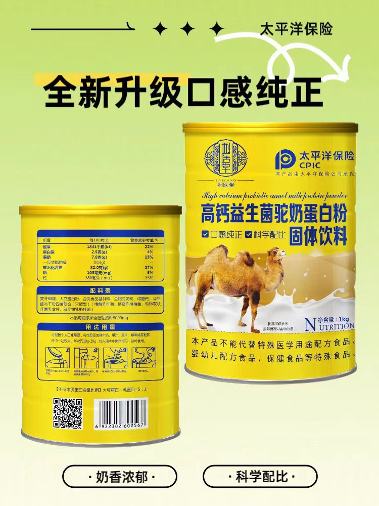利医堂高钙益生菌骆驼奶蛋白粉1000克固体饮料营养驼奶粉