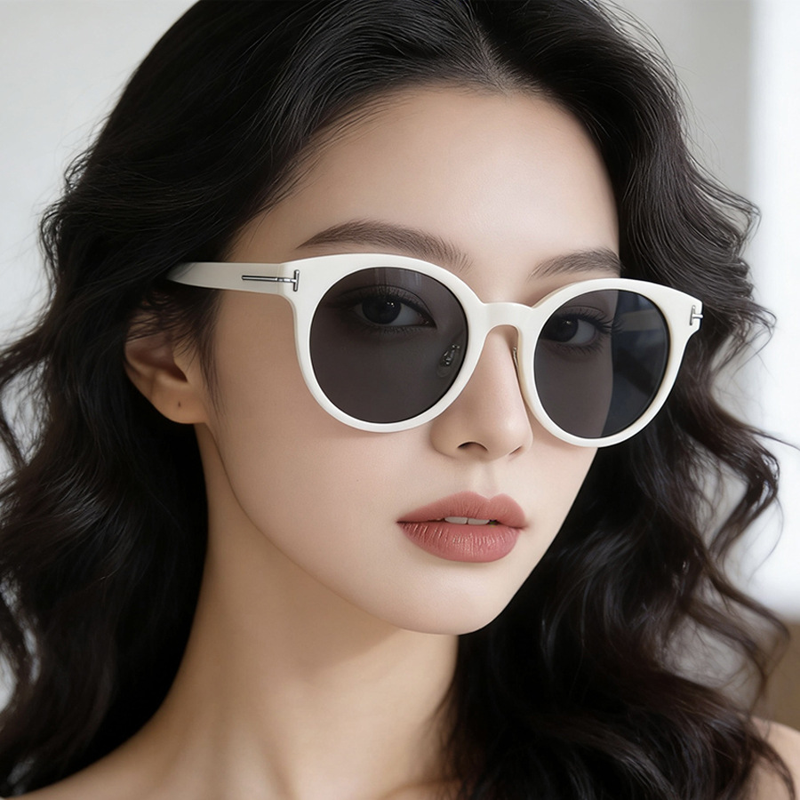 新款复古T字圆形太阳镜女防紫外线带鼻托显脸小TR偏光墨镜高级感