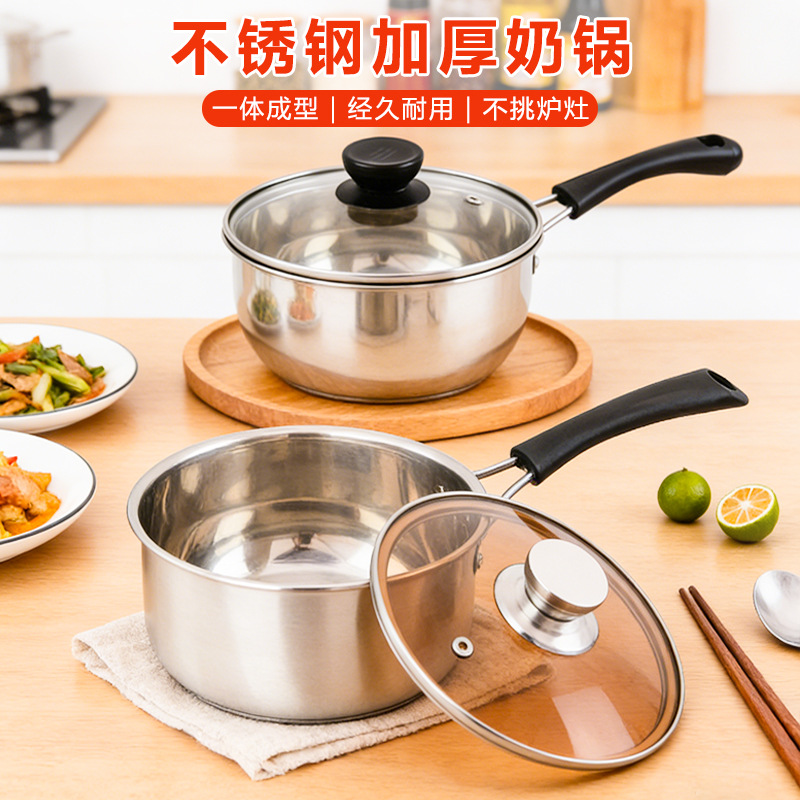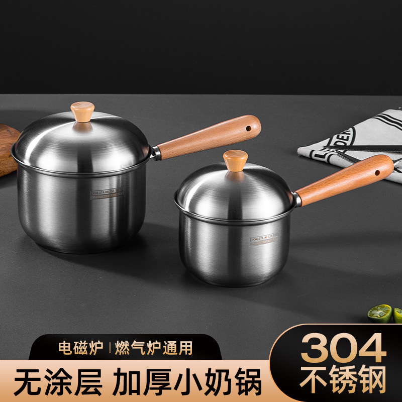 304 ステンレス鋼ミルクポット未コーティング離乳食サプリメントポット肥厚二重底麺調理ポットシングルハンドルポット朝食ポット極厚