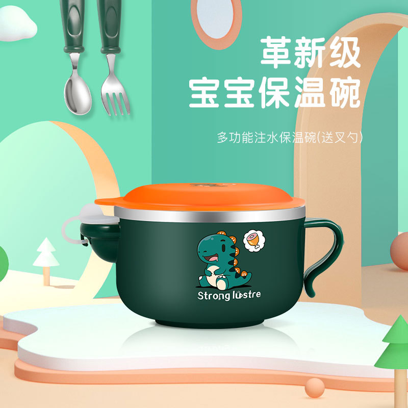 316ステンレス赤ちゃん注水保温ボウル蓋付き子供食器漫画食事補助ボウル赤ちゃんボウル