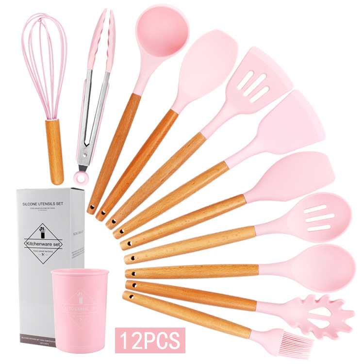 シリカゲル調理器具12点セット無粘着鍋11台所用品収納桶調理木柄スプーンシャベル11点セット