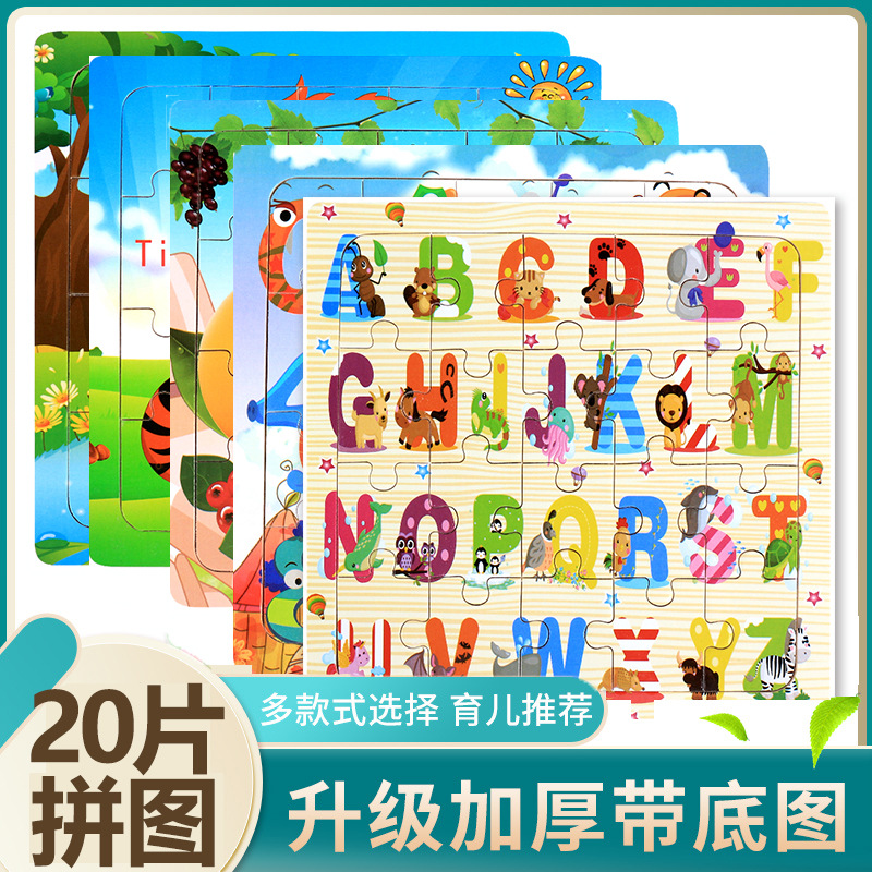木製3-7歳20枚木製パズル子供動物パズルパズルパズル早教漫画平面パズル玩具