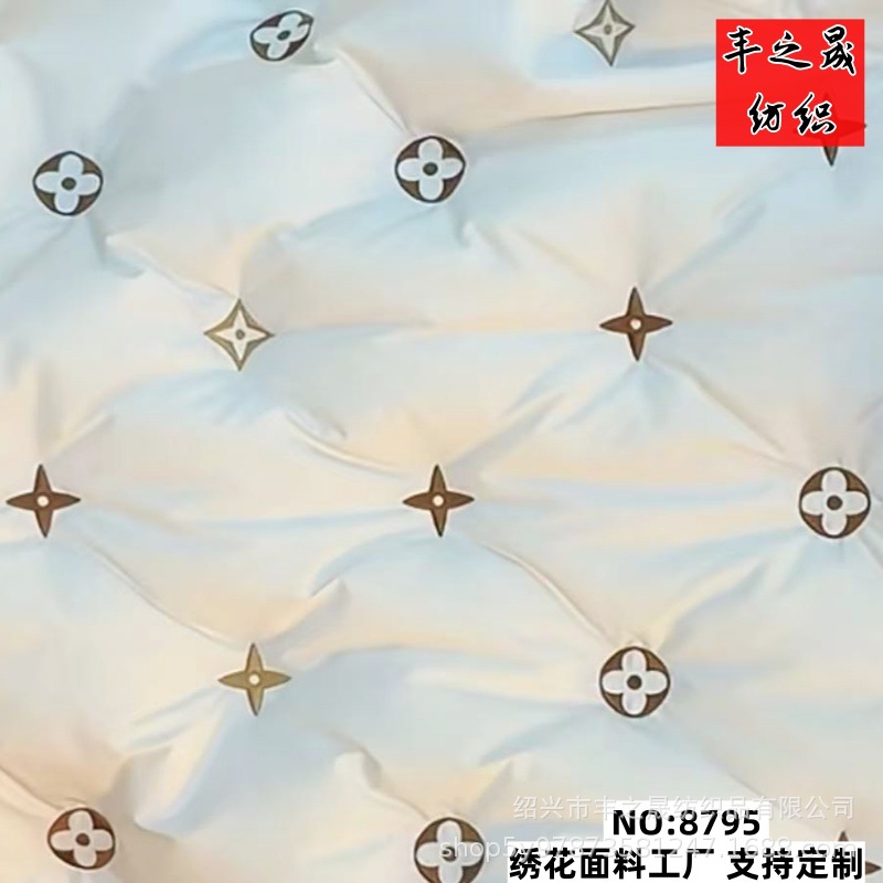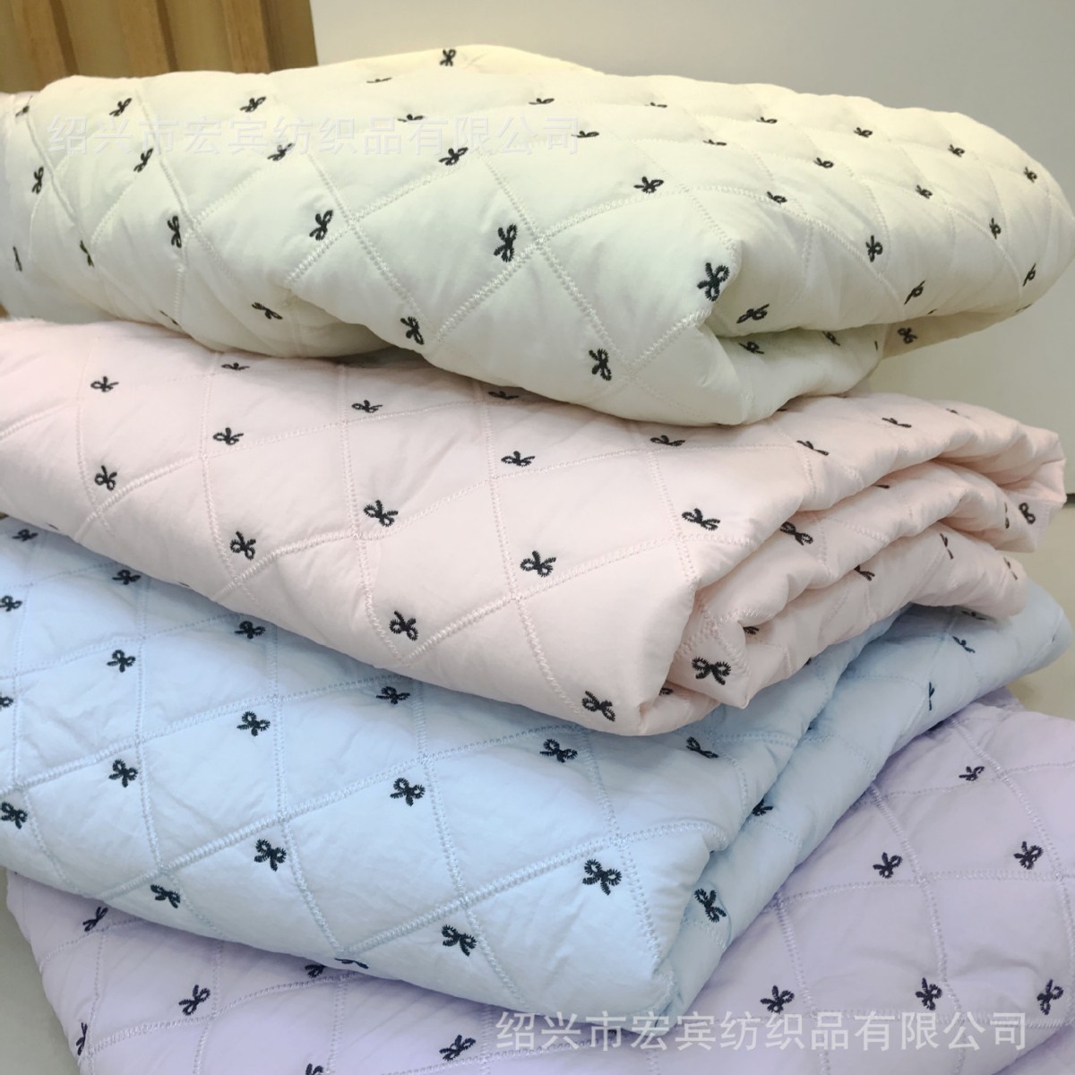 刺繍生地キルティング春亜紡織生地刺繍綿衣綿愛挟み綿紡織コンピュータ回縫キルティング刺繍工場