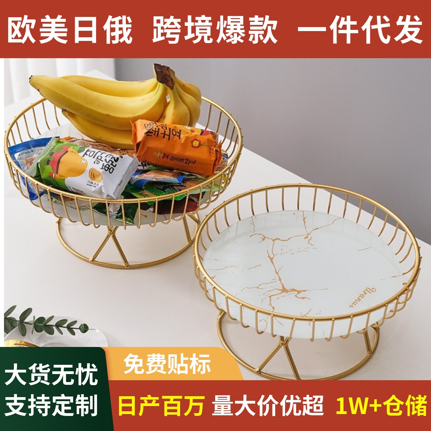 欧式轻奢水果盘创意客厅家用水果篮下午茶糖果甜品架点心金属托盘
