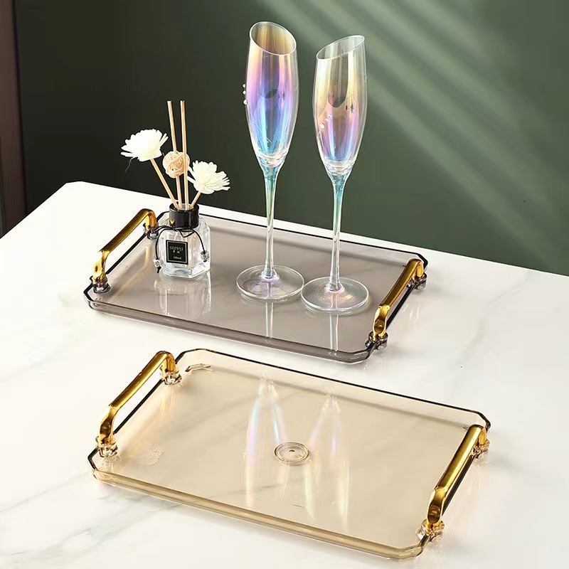長方形の軽い豪華なヨーロッパ式の家庭用のコップの皿のコップのお茶の皿のプラスチックの取っ手の皿のコップの棚の水たまりの皿