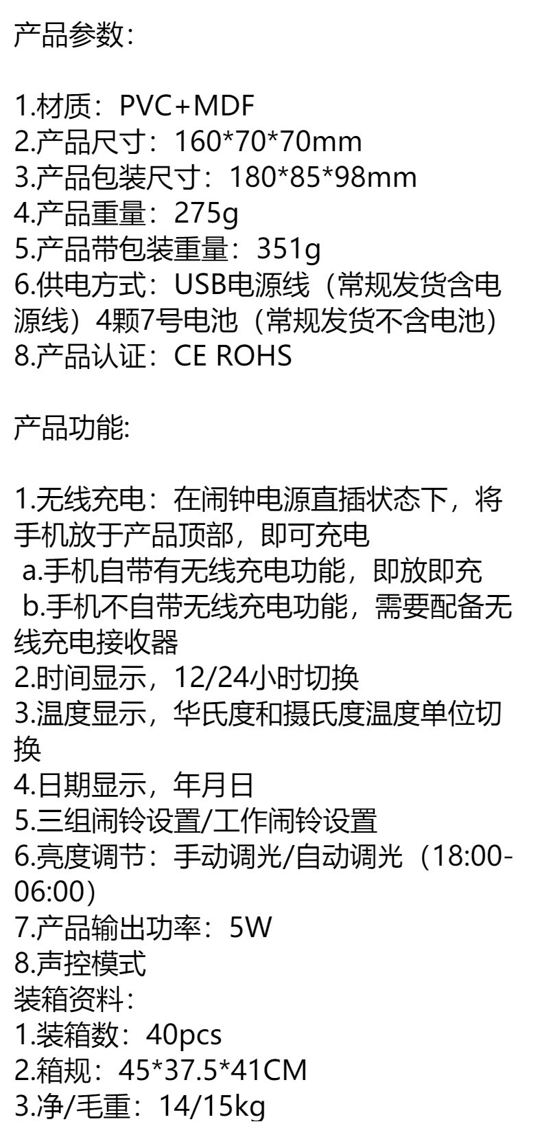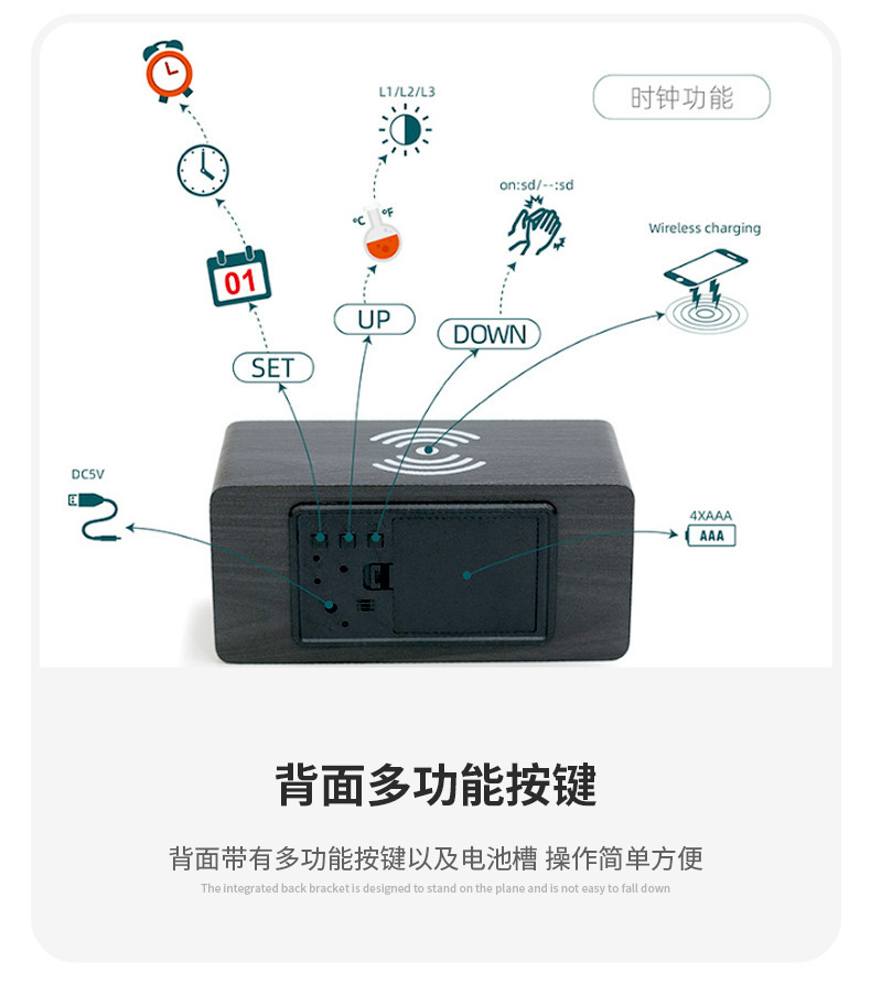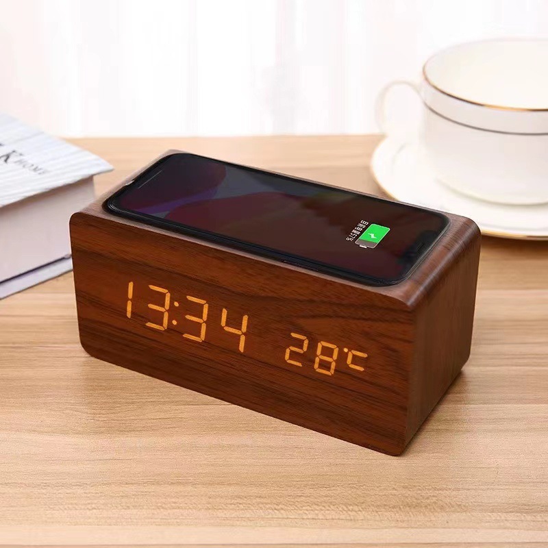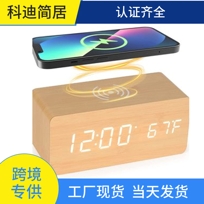 クロスボーダーLED木製電子時計充電タイプ時計ワイヤレス充電子供目覚まし時計pvcデジタル卸売木製時計