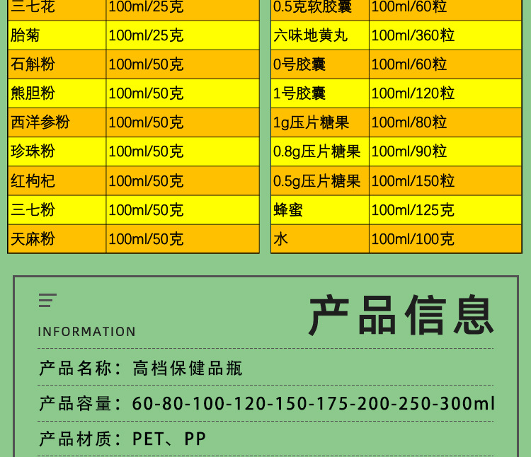 メーカー60ミリリットルPET健康食品薬瓶150ミリリットルカルシウムカプセル打錠キャンディー消毒片蓋瓶