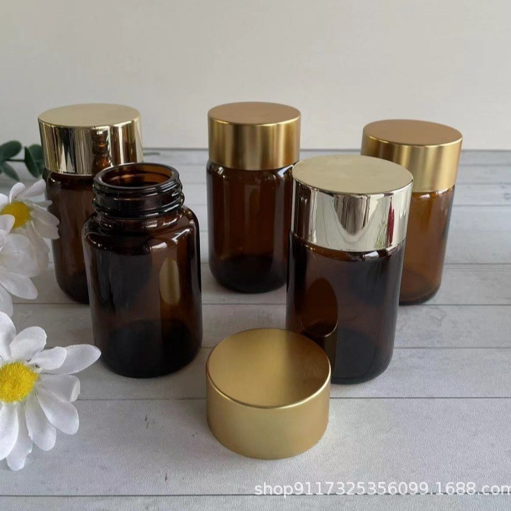 现货100毫升药品瓶茶色玻璃胶囊瓶避光广口瓶保健品棕色玻璃瓶