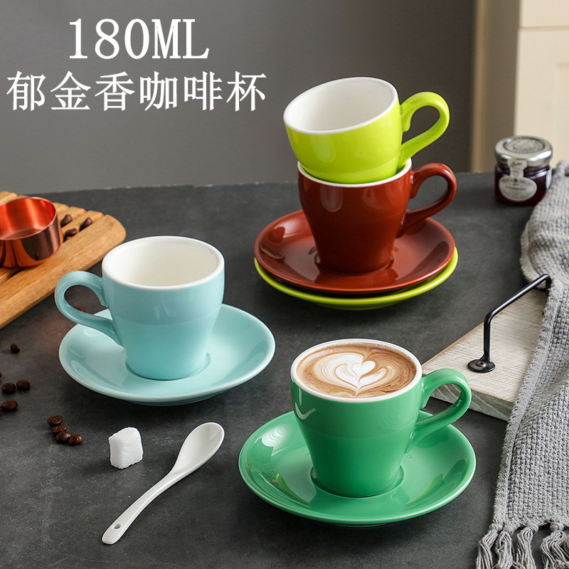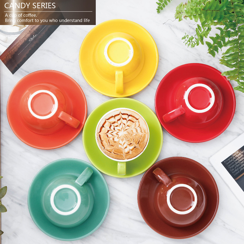 色釉コーヒーカップ皿セットカラーヨーロッパ式専門花カプチーノラテカップ厚さセラミック300ml