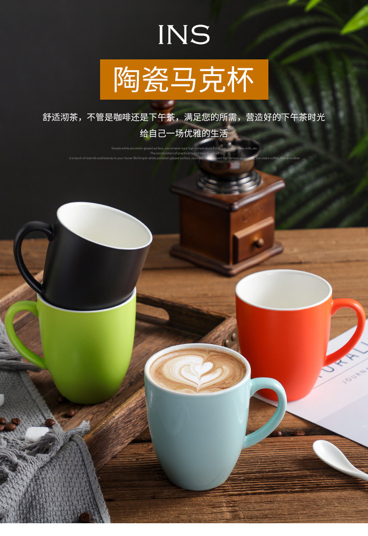 釉薬マグカップセラミックコーヒーカップカラーカップラテカップカップミルク朝食カップホテル400ml