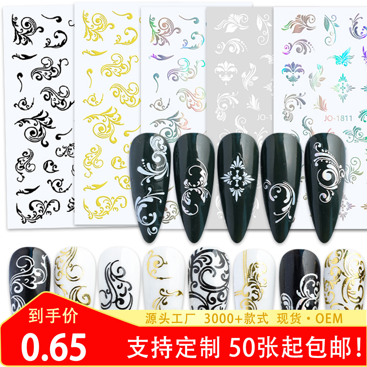 国境を越えた対外貿易で人気のある箔押し復古ボヘミアントーテム美甲貼りレース金色白黒藤曼立体