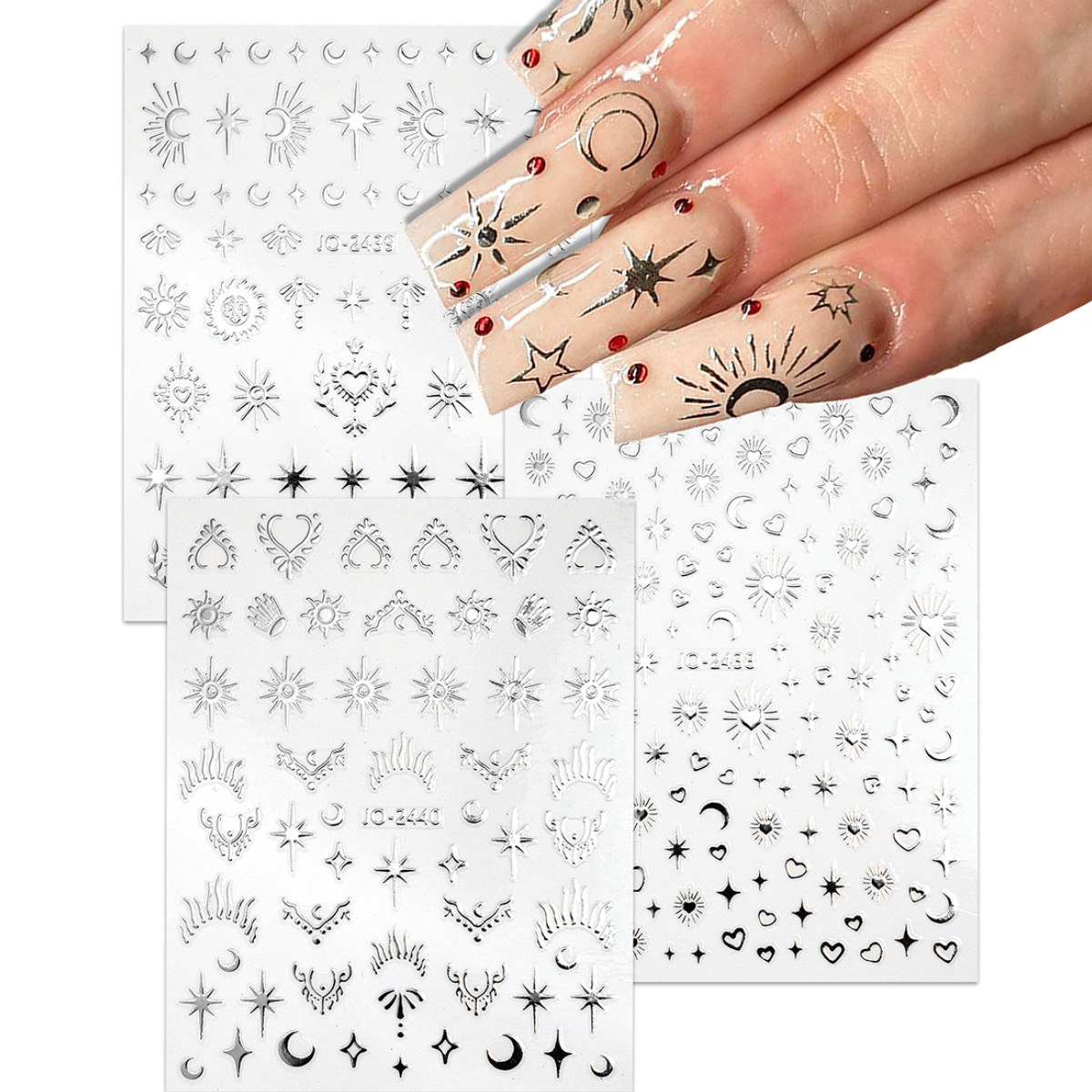 外国貿易insレーザー銀色星月ネイル液体透かし彫り金属四星芒防水バックゴムネイルシール
