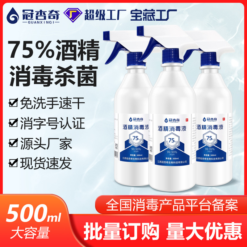 75%酒精喷雾家用乙醇消毒液免洗速干杀菌500ml伤口消毒水大桶批发