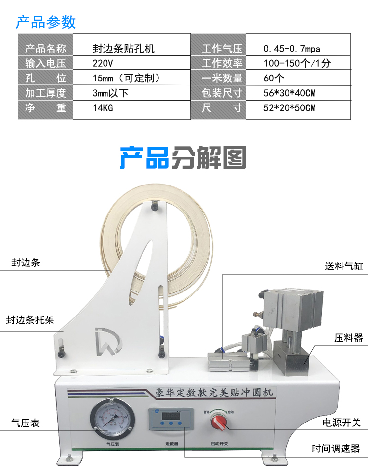 封边条冲孔机冲孔器12冲刀三合一孔贴机冲孔机封边带冲孔机打孔器