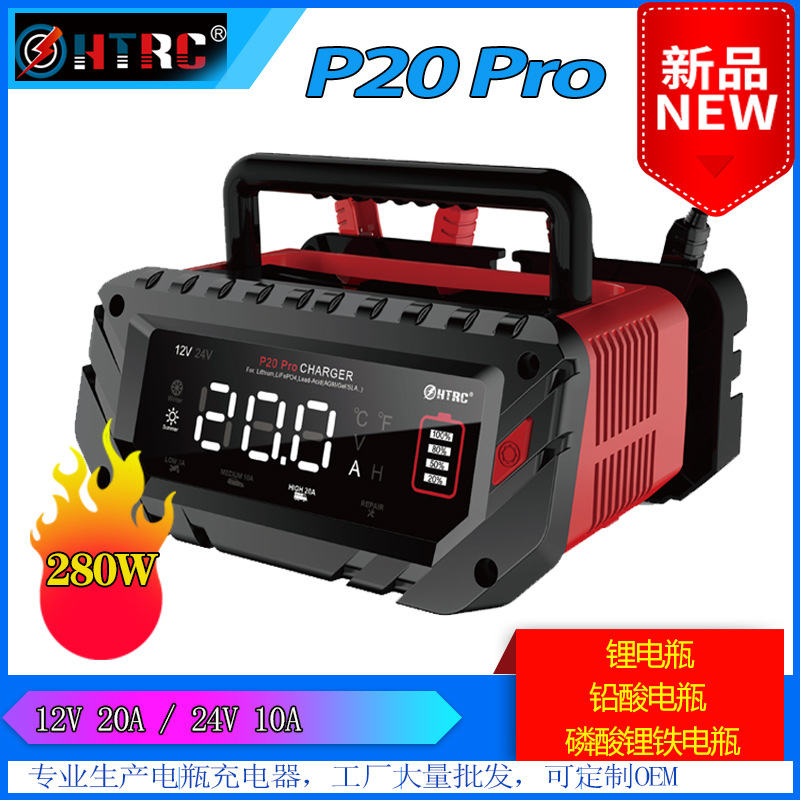 P20自動車オートバイバッテリー充電器12V20A24V10A鉛蓄電池AGM充電器HTRC