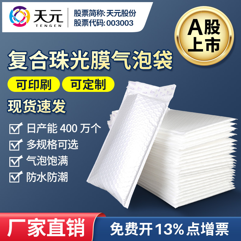 天元白色珠光膜気泡袋複合光防水服装包装物流気泡封筒袋現物