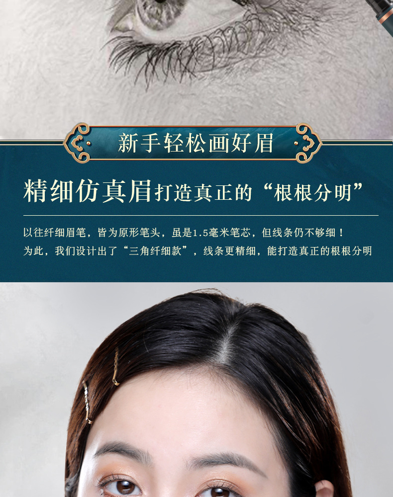 Novo眉黛極細三角眉筆自然繊細防水汗防止新米は両頭眉筆に酔いにくい