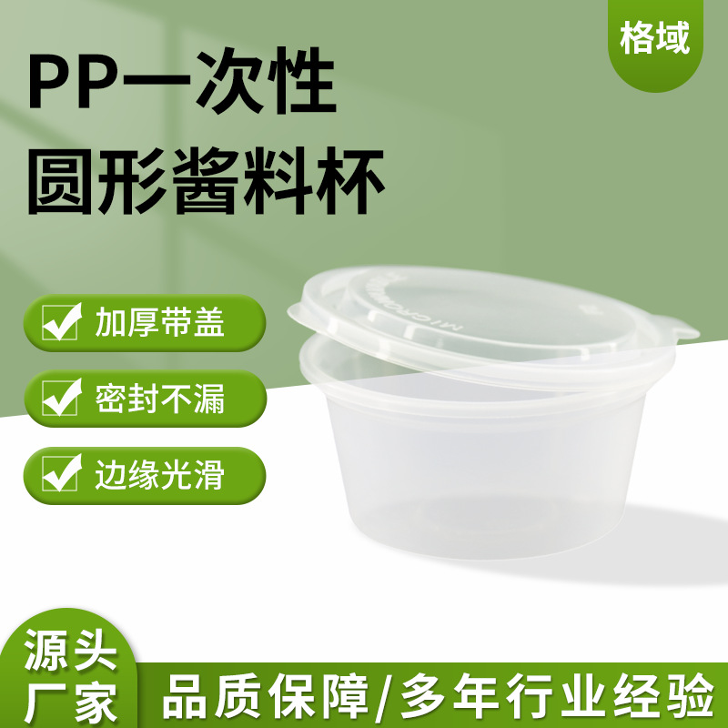 生分解性PP素材の使い捨て丸型ソースカップ、蓋付き、密封、漏れ防止、テイクアウト、業務用小物の再包装に不可欠