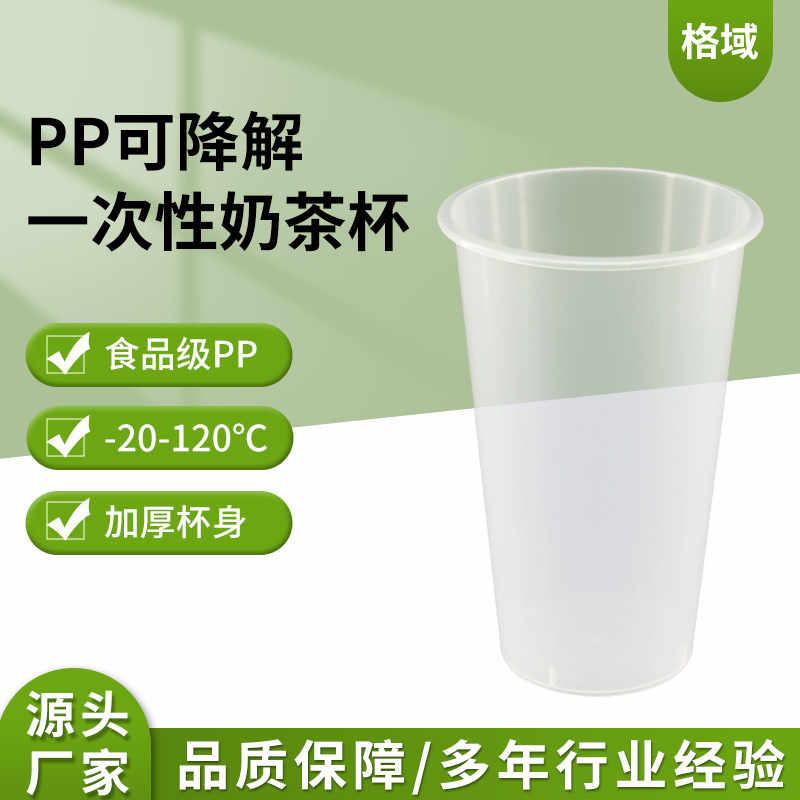 分解性PP素材の使い捨てミルクティーカップ、密封、漏れ防止、高温耐性、無臭、ミルクティーショップに最適