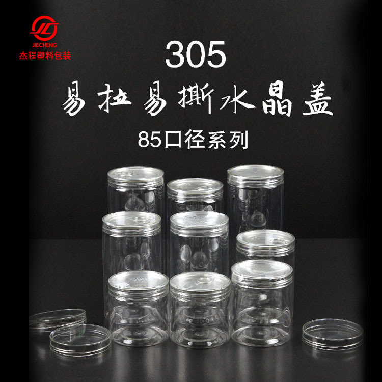 85口水晶蓋円形petプラスチック缶食品級密封缶透明プラスチック瓶間食包装缶