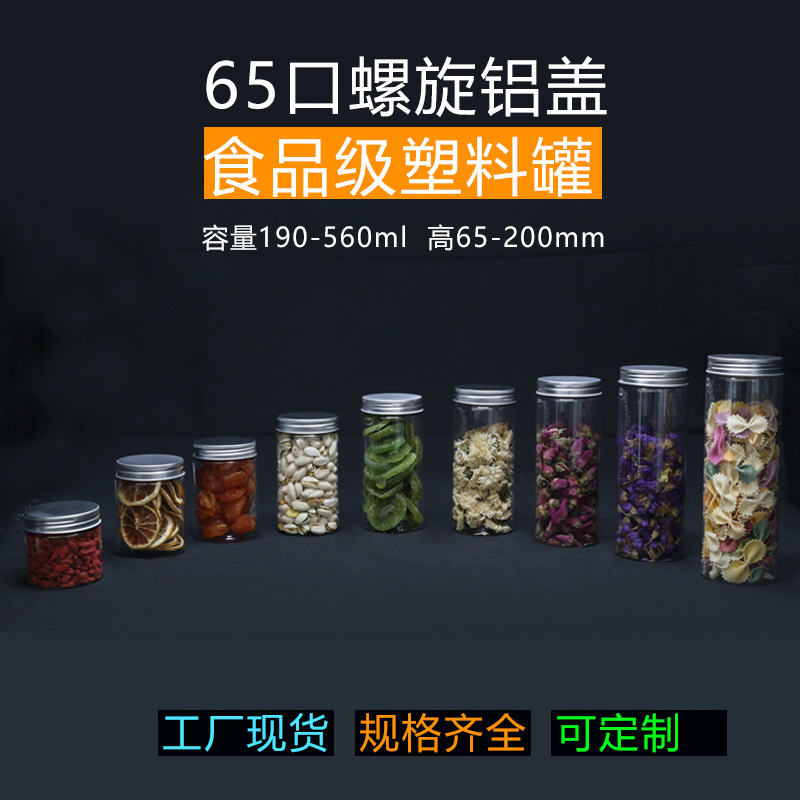 卸売り65口水晶蓋透明プラスチック包装食品缶pet花茶ナッツ缶キャンディー瓶プラスチック缶