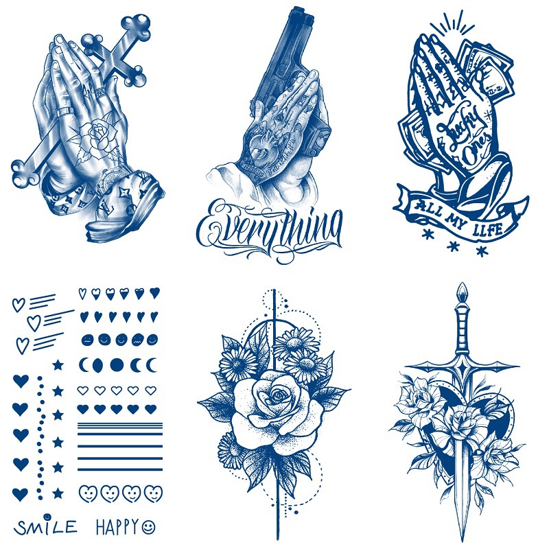 素朴なボヘミアンブルーローズマーメイド防水タトゥーステッカー、模擬水転写、カスタムデザイン、越境ステッカー