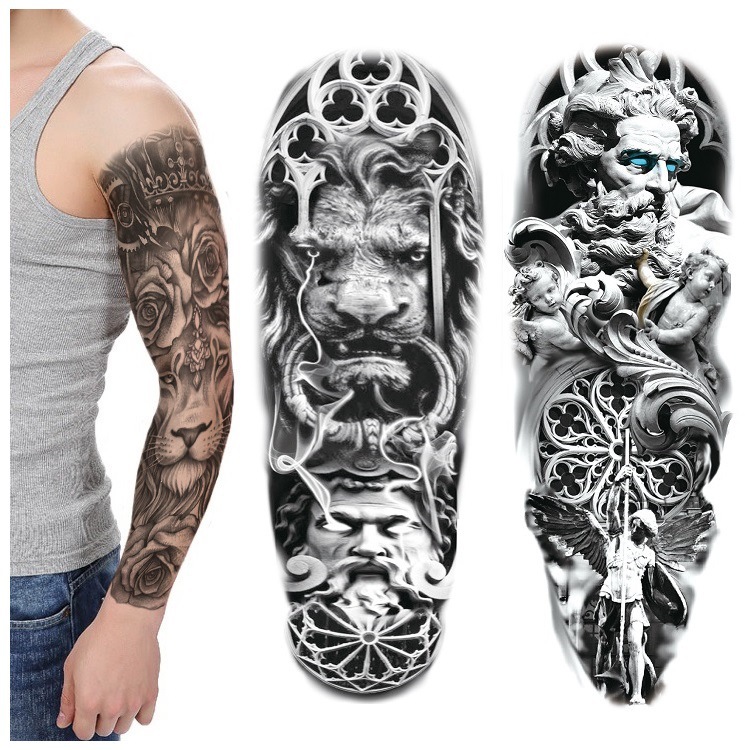 全体の腕の大きい花の腕の大きい図案の全体の腕の越境の水はライオンの欧米の天使の現物のスーツの刺青を転写します。