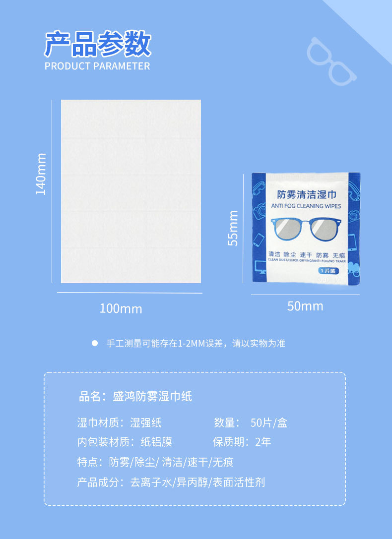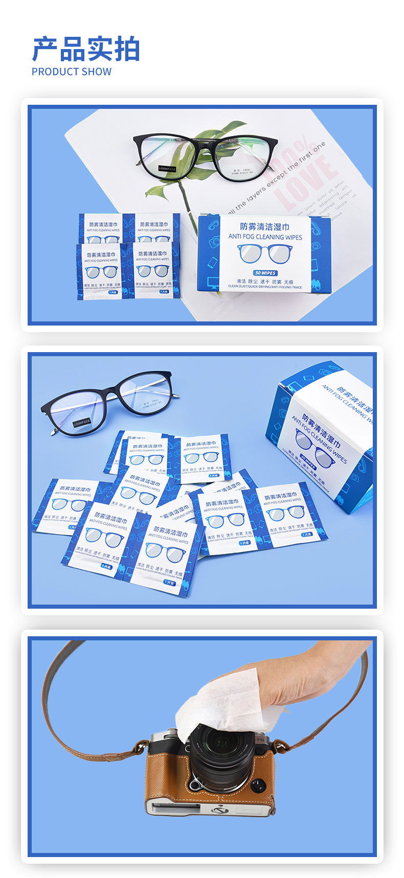 工場現物使い捨て鏡布携帯レンズ拭き布防霧ティッシュ拭き眼鏡ウェットティッシュ卸売り50枚
