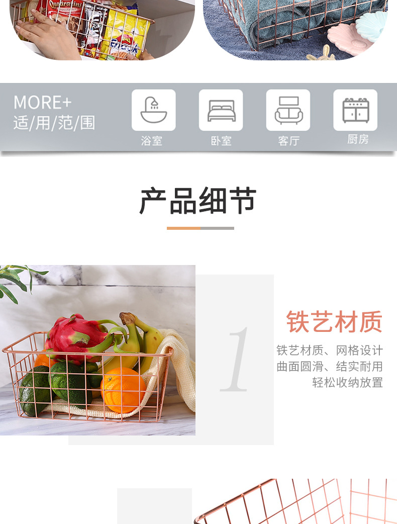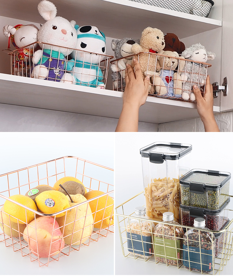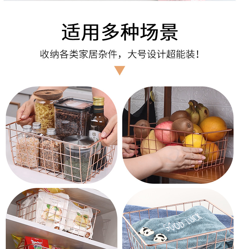 跨境衣柜衣物整理收纳框厨房零食收纳筐多用途铁艺收纳篮现货批发